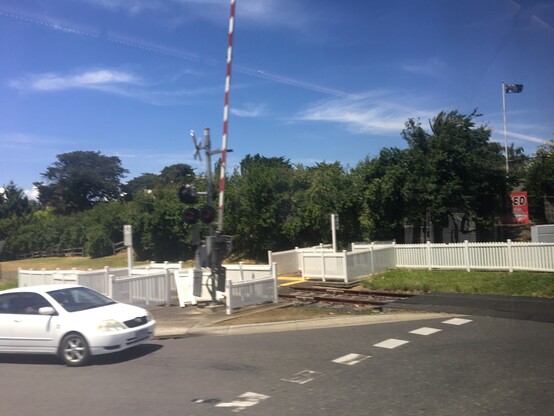 now on the bus home from healesville, just drove through yarra glen and saw this (seemingly) completely isolated level crossing in yarra glen, with a dead-end track on one side and a station building on the other. any folks on #train or #gunzel mastodon have any idea whatโs going on here? presumably some sort of restoration work? looked relatively new so i doubt itโs abandoned