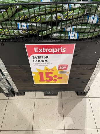 Dramatik på den hyperlokala (ICA Kvantum Flemingg/Scheeleg) gurkmarknaden: ras med 57% på mindre än en vecka. Hatten av för alla er som gick kort och blankade gurkan förra veckan. Rekommendationen är nu KÖP. #gurkan