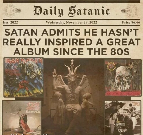 #1980s #dailysatanic #heavymetal #satan #hailSeitan #truestory #ironmaiden #slayer