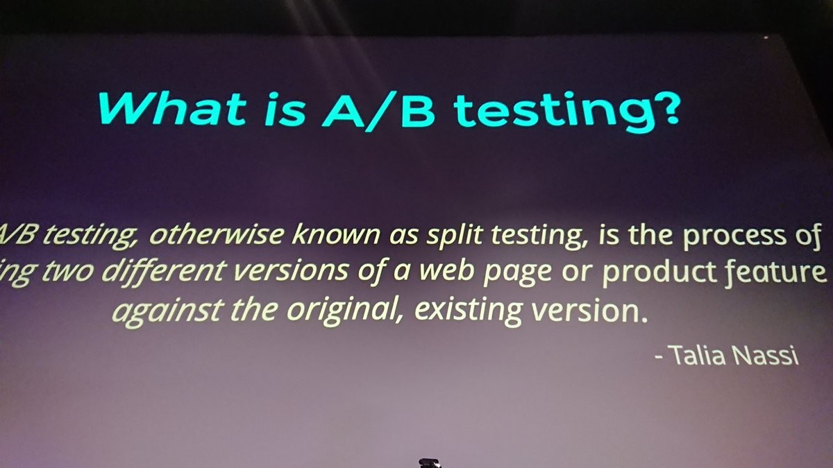 Nice. @talia_nassi getting a shout out in @saltnburnem's a/b testing talk.