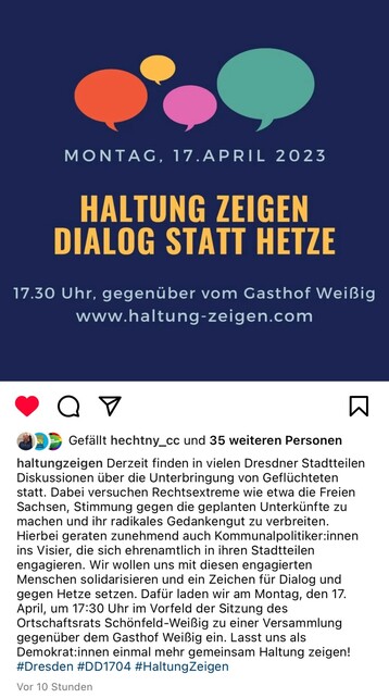 Hallo Dresden, bitte mal vormerken und #Haltungzeigen