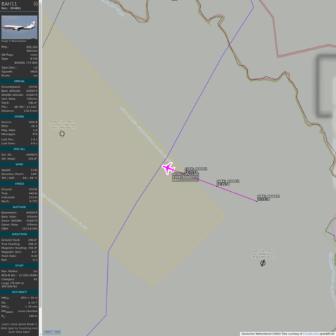 #PlaneAlert ICAO: #894060 Tail: #A9CBRN Flt: #BAH5