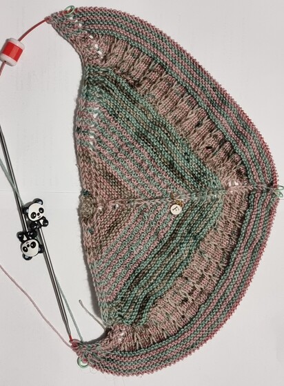 #knitting #fibreArts #Knitsodon #knittedShawl #handDyedYarn #knittersOfMastodon @knitting #knit #photo