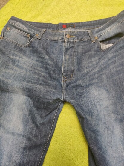 One pant leg done. Still need to do the other, the pocket extension is finished, the patches in the back are finished, just need to add another small patch on the inside in the front, then it's finally done! Many many hours of slowly fixing them while generally unwell.