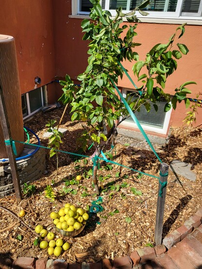 *(Please disregard the weird bands, I failed to brace the young branches properly from the weight of the pears 😬 and I'm trying to retrain them)