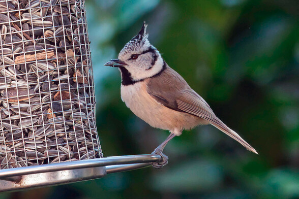 Crested tit (Haubenmeise) at bird table, #ödensee