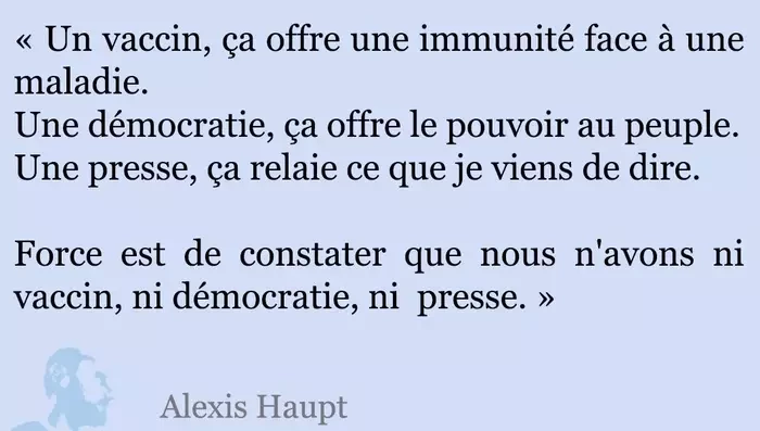 Si on ne comprend pas que "antivax" et "complotiste" sont des termes pour ne pas dire "opposants au totalitarisme", on n'a rien compris à ce que l'on a vécu, à ce que l'on est en train de vivre et à tout ce qui arrivera dans les prochains mois et années.