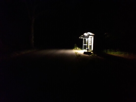 Ein Bushalt steht im Walde, ganz hell und stumm. Es hat um die Behausung Grunewald drumrum.... #Nachtradelrunde #Havelchaussee
