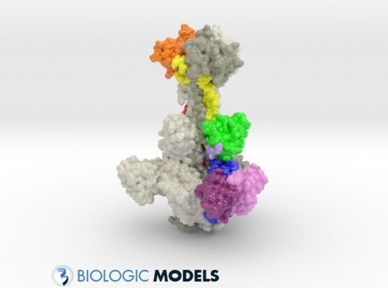 Human Cytomegalovirus HCMV infection is regulated by Glycoprotein B (gB) making it a target for neutralizing antibodies and a vaccine candidates. This 3D printed molecular model of #HCMV Glycoprotein B visualizes where neutralizing antibodies bind the glycoprotein and used by healthcare provides to discus therapies. https://biologicmodels.com/pdb/5c6t/human-cytomegalovirus-hcmv-glycoprotein-b/