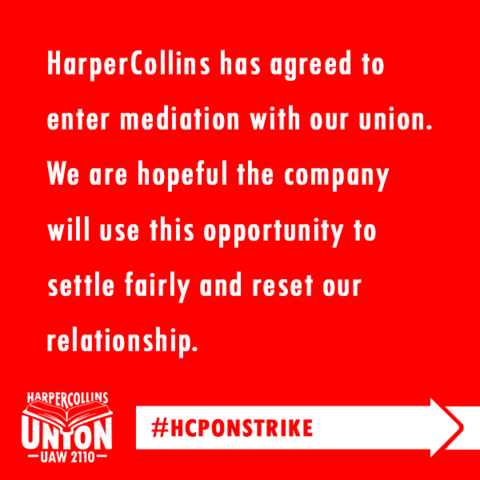 HarperCollins has agreed to enter mediation with our union. We are hopeful the company will use this opportunity to settle fairly and reset our relationship. #hcponstrike