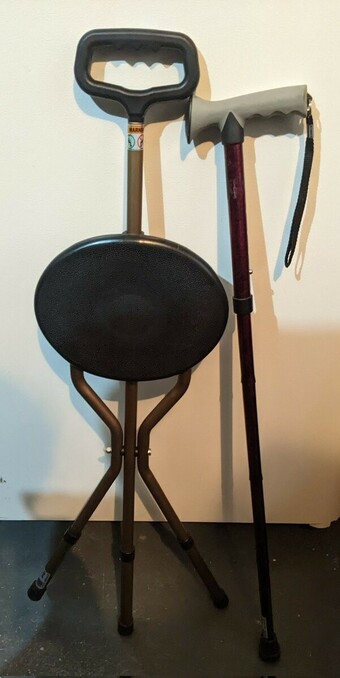 When you need help standing up straight (& balance), but also can't sit & have patients to see, but can only choose 1 mobility aid kind of days.
