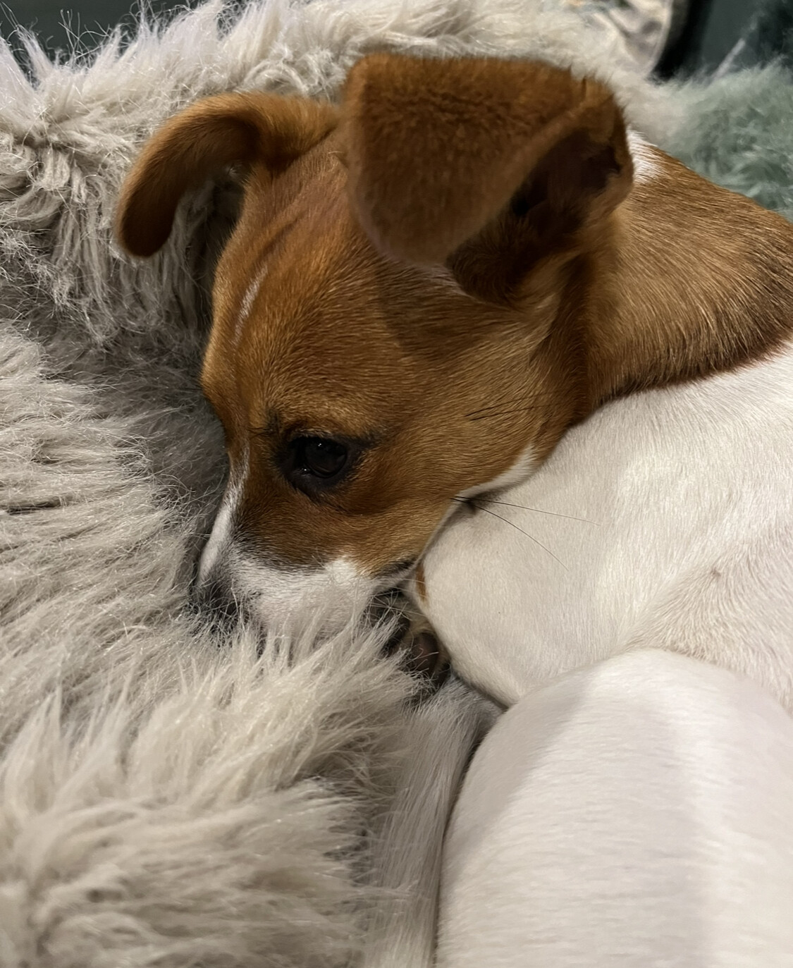 This sweet little creature just hopped up on the couch next to me. She always knows when I need a puppy hug! 💖