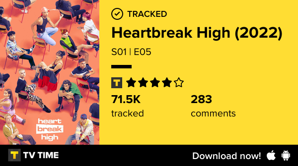 I've just watched episode S01 | E05 of Heartbreak High (2022)! #heartbreakhigh https://tvtime.com/r/2FqOE #tvtime