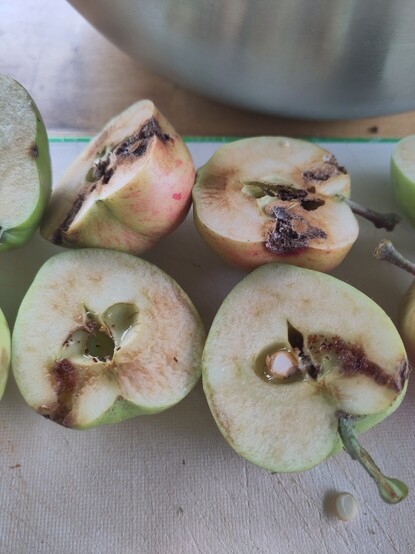 Det går med noen timer til å skjære vekk rognebærmøll-driten fra eplene, men så blir det frukt av det også. Med dagens innsats klokker jeg inn 7,8 kg eple i fryseren hittil, for det aller meste nedfallsfrukt. Håper på at eplene fortsetter å vokse, og at jeg kan pushe 40 kg-grensa i år!
