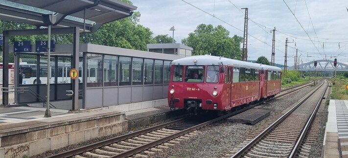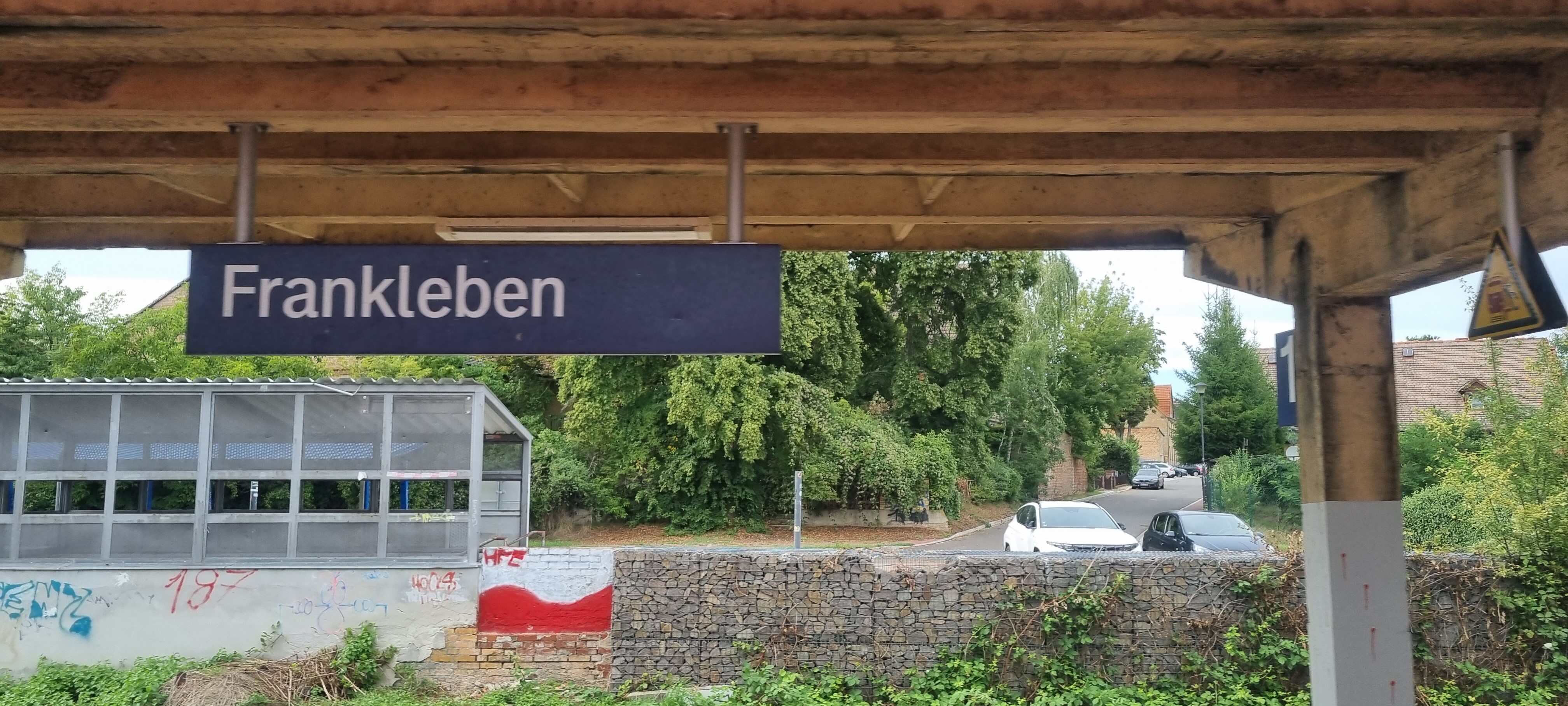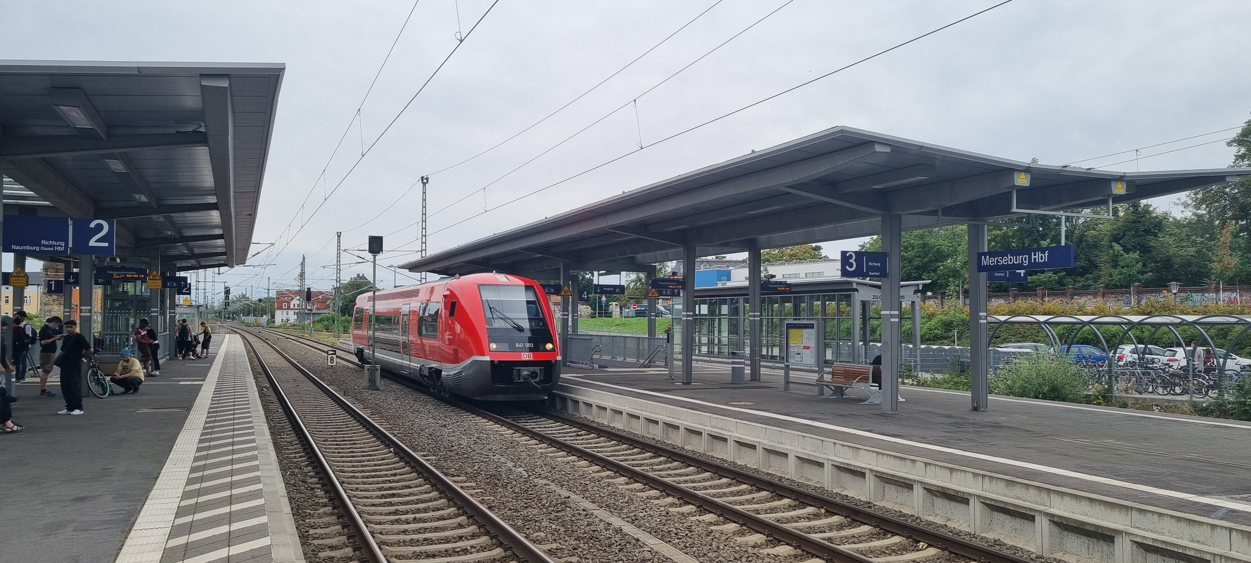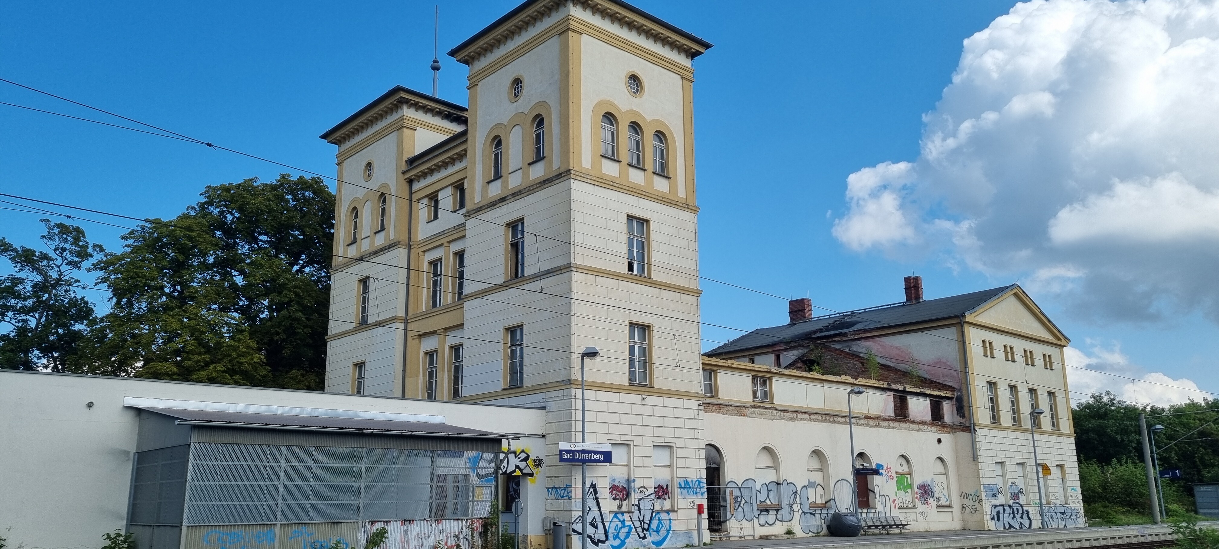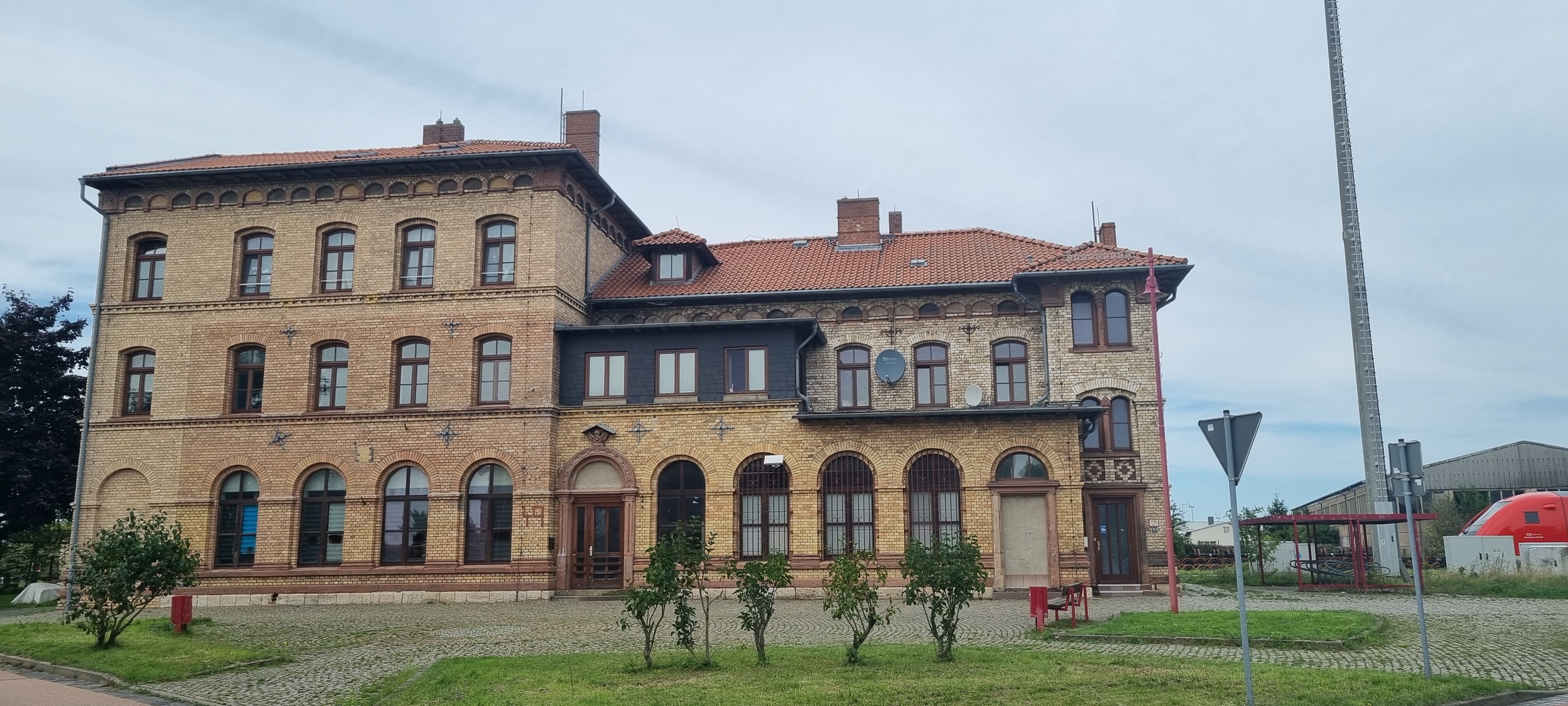 Nach einem Abellio-Viehtransport (RB 20 nach Erfurt, völlig überfüllt wie zu €9 Ticket-Zeiten, Klimaanlage völlig überfordert) geht es in Bad Dürrenberg am desolaten Bahnhofsgebäude vorbei zu wat janz Besonderes!