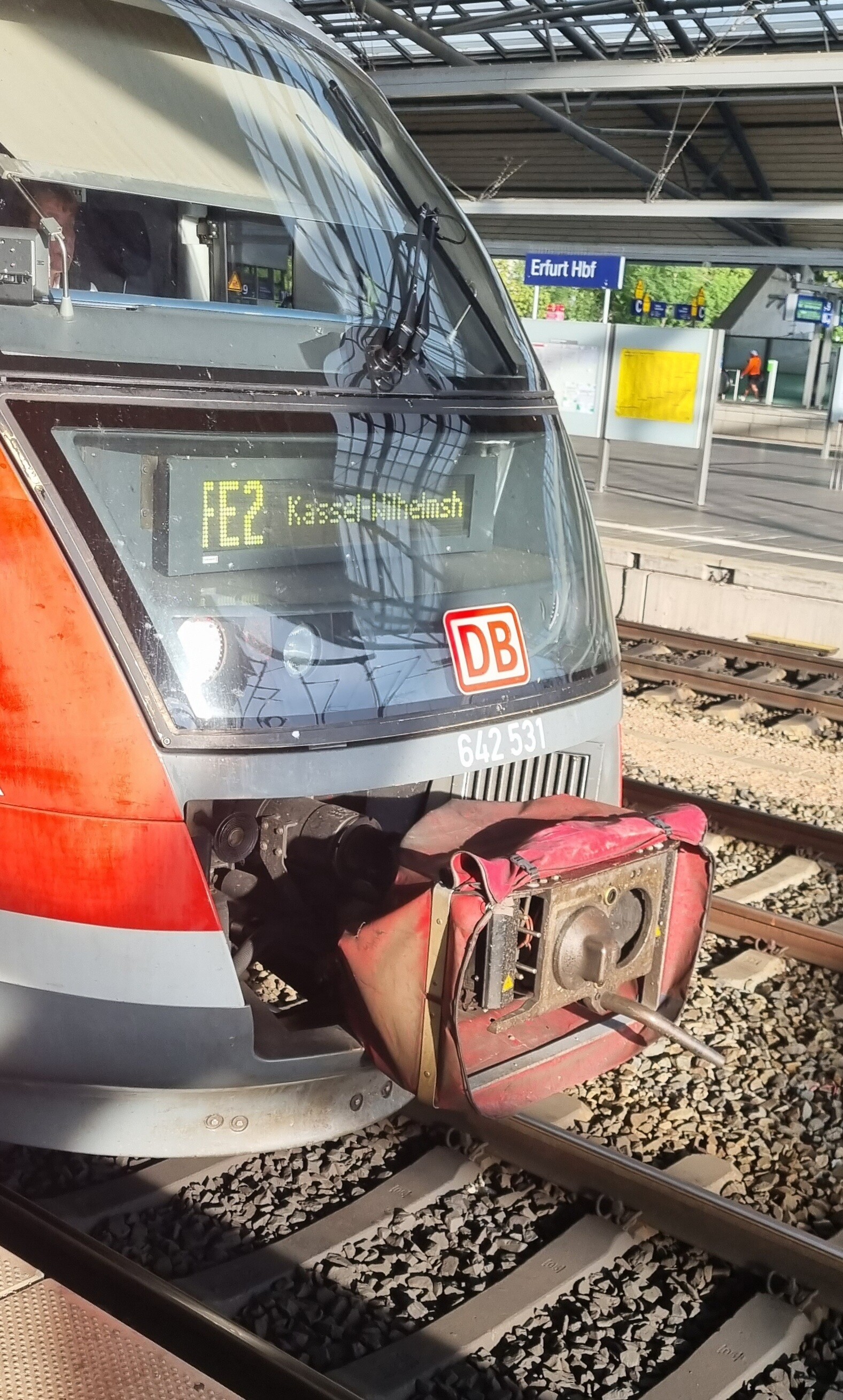 Und das, liebe Kinder, ist ein DB-Wal, der mit seinen sechs, sieben Minuten Verspätung für den ersten Anschlussverlust heute gesorgt hat: Abellio-RE 16 nach Airfurt (hallo Vicky Schmölz!) weg, nach Halle fällt die RB 25 aus wegen Personalausfall und wäre auch nicht schneller, also mit der RB 25 nach Naumburg. #InTschechienWäreDasNichtPassiert #HeizHouseFeschd
