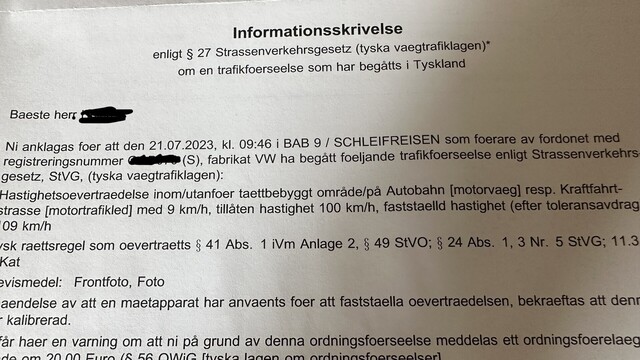 Ah, die Thüringer Polizei verschickt Bußgeldbescheide auch auf Schwedisch. Interessant dabei: die in Deutschland ebenfalls gebräuchlichen Buchstaben ä und ö werden in ae und oe umgewandelt. Wird für den gemeinen Schweden dadurch sehr unverständlich. Das schwedische å wird aber durchaus verwendet. #wtf #hejasverige