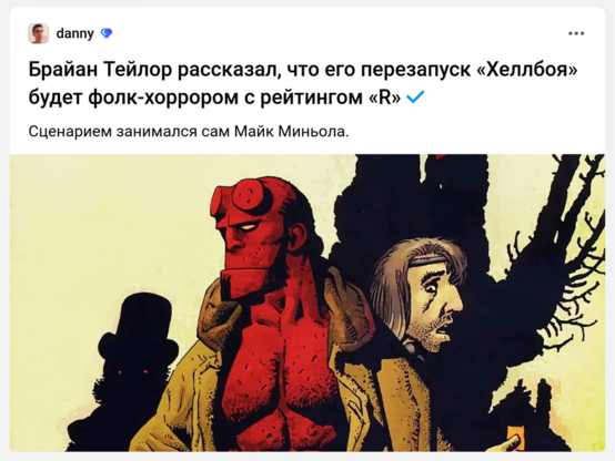 Я как-то упустил свежую тему ещё одного ребута кино «Hellboy», а оказываться, что там синопсис воодушевительный. Жаль, что не возвращение серии от дель Торо, но участие Миньола внушает надежду и интерес.