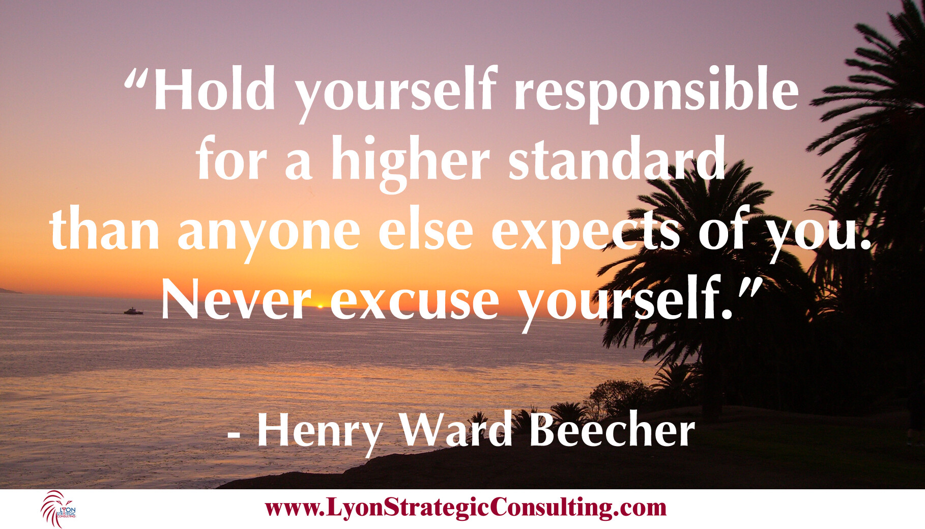 "Hold yourself responsible for a higher standard than anyone else expects of you. Never excuse yourself." - Henry Ward Beecher #WednesdayMotivation #QuoteOfTheDay #ContinuousImprovement #Coaching #LyonStrategic #HenryWardBeecher