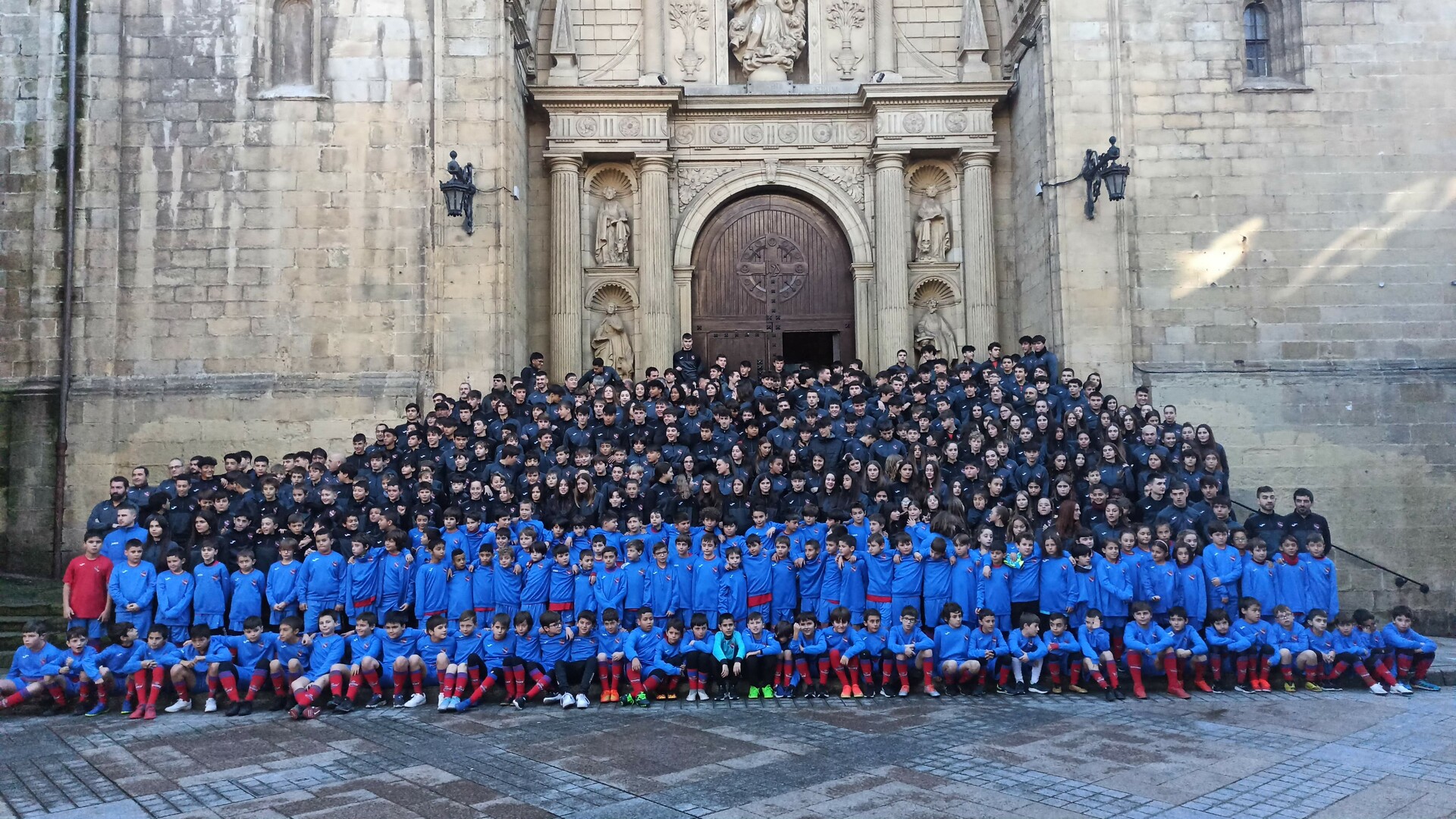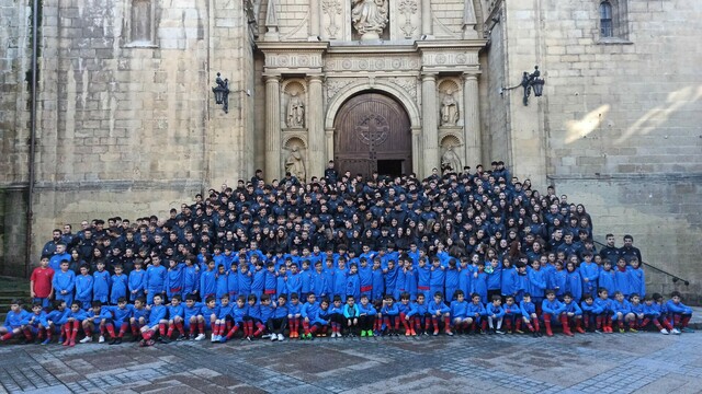 Herriko Touring KE futbol taldeen aurkezpen eta argazki erraldoian, denak pozik.