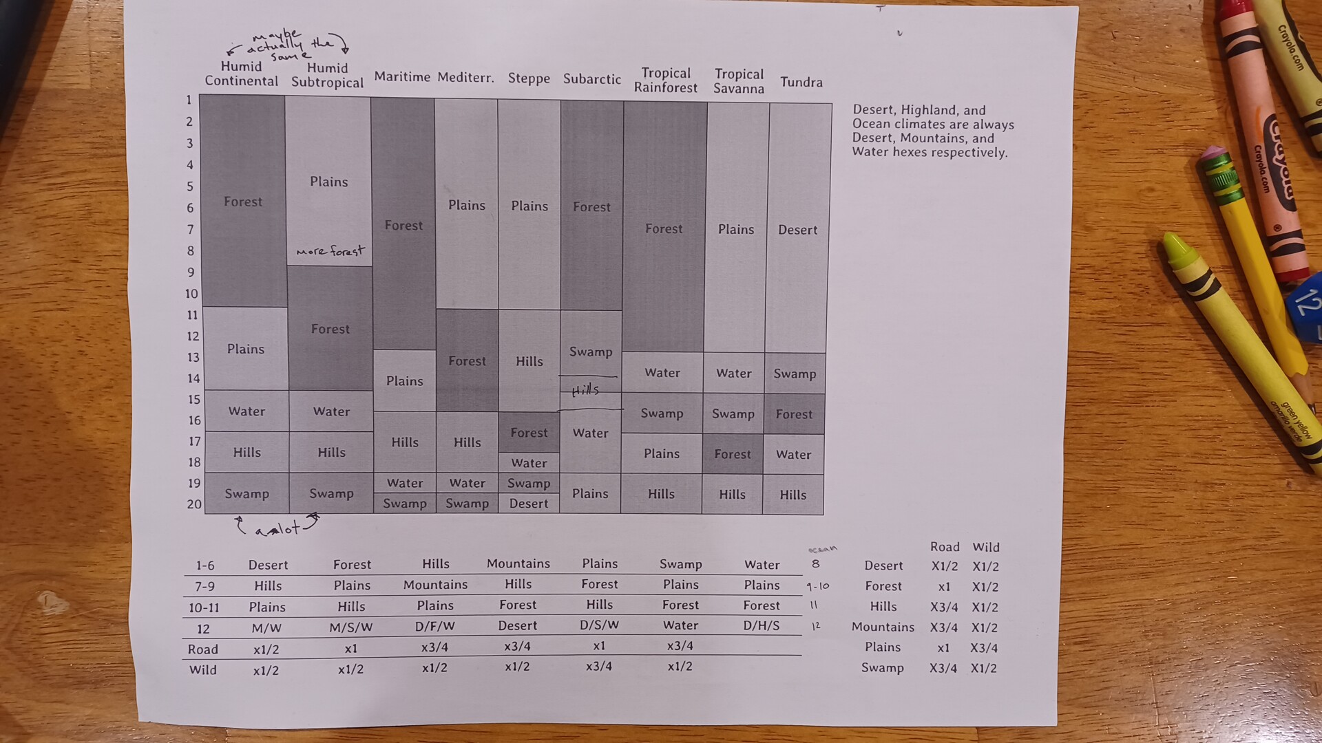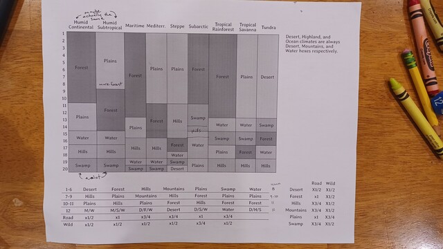 The lower table is based on this blog post: https://welshpiper.com/hex-based-campaign-design-part-1/