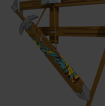 I felt like the sword looked a little too pristine so I added some west and tried to make it look swiped and decorated by an orc foot soldier who got his hands on the opposing banner. #RosesWillRise #gamedev #blender #lowpoly #b3D #hexels