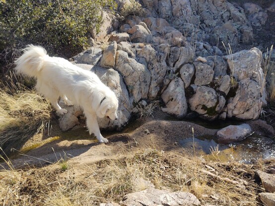 Having fun, exploring creeks in the mountains #greatpyrenees #dogsofmastodon #hikewithyourdog #hiking #rescuedog #SanBernardinoNationalForest