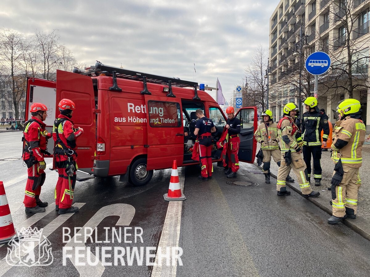 Durch die #Spezialkräfte der #Höhenrettung konnten aus dem oberen Konstruktionsbereich des geborstenen Aquariums noch mehrere Dutzend lebende Fische gerettet werden. Aktuell laufen die Pumparbeiten sowie die Beseitigung der Trümmerteile. Übergabe der #Est an @polizeiberlin@twitter.com, @THW@twitter.com
