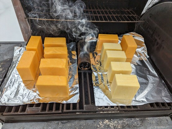 For today's creative endeavour, I'm smoking cheese to share with friends and neighbors as a holiday treat.