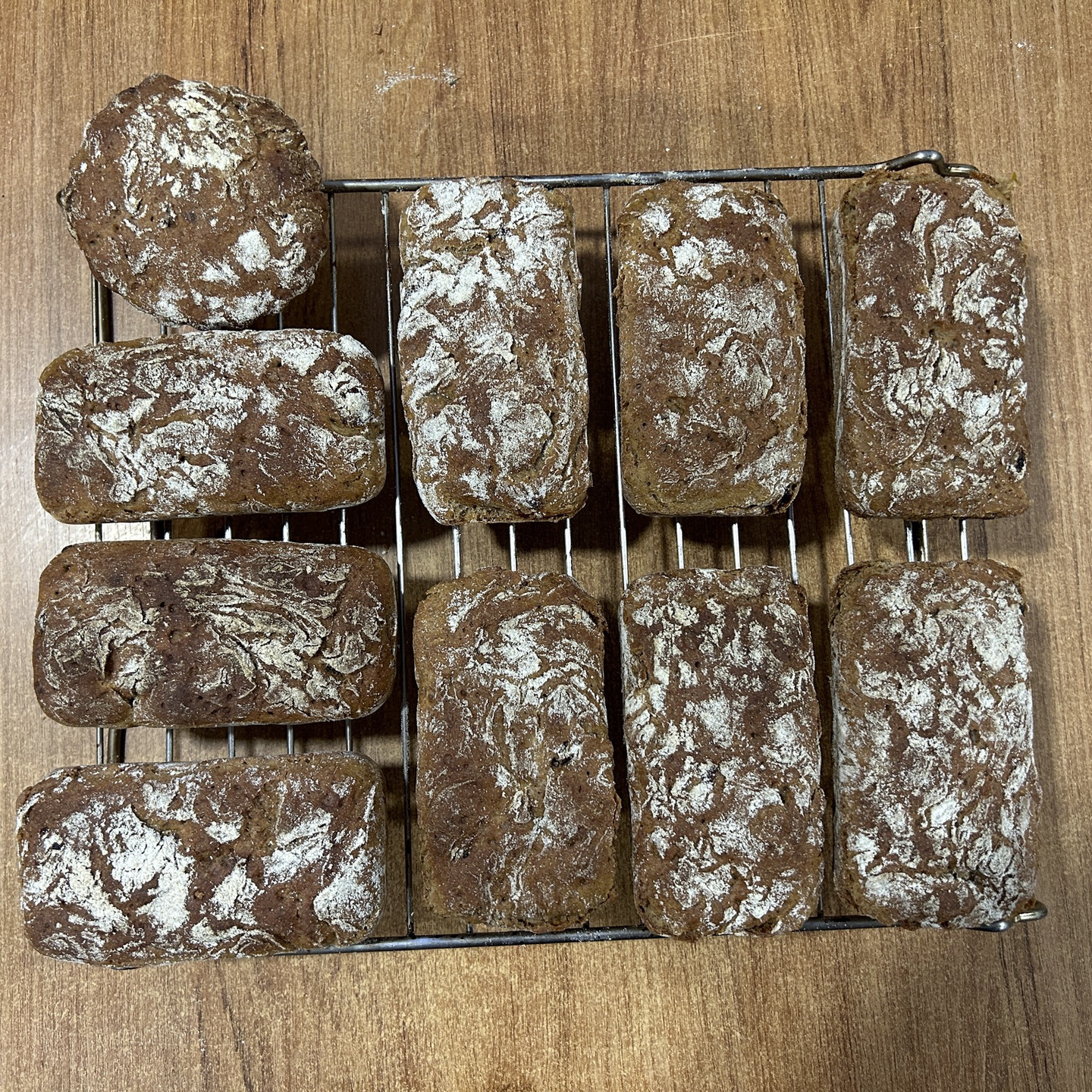 Absolute perfection, or as close to it as I will ever come. It's rye bread with dried fruit; another great Richard Bertinet recipe - and look, @NoTwit, how small they are...