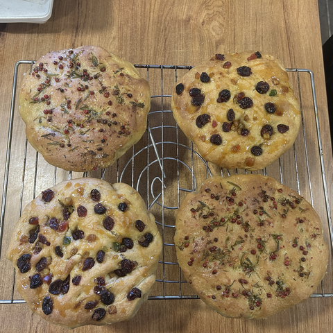Focaccia day, and I decided to make four small ones instead of one big slab: