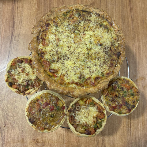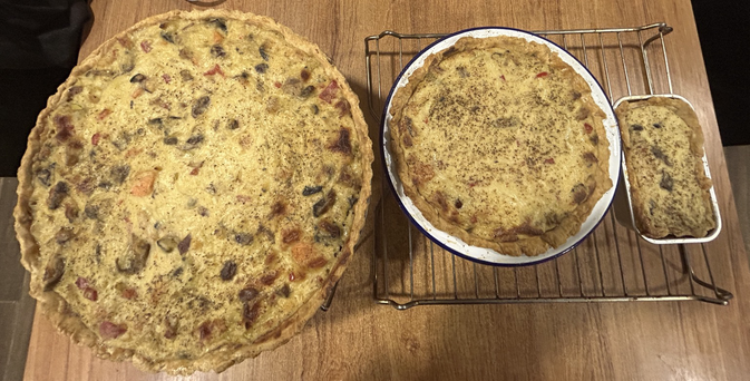 Earlier I posted a few pics* of the ingredients that would make the pies I would then bake later in the day. Well, they have been baked now. The two big ones will go straight into the freezer; I'll have the small one tomorrow.