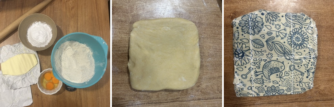 Pic2: ingredients for the crusts to be. Regular flour, salt, 1 egg, water & loads of butter.