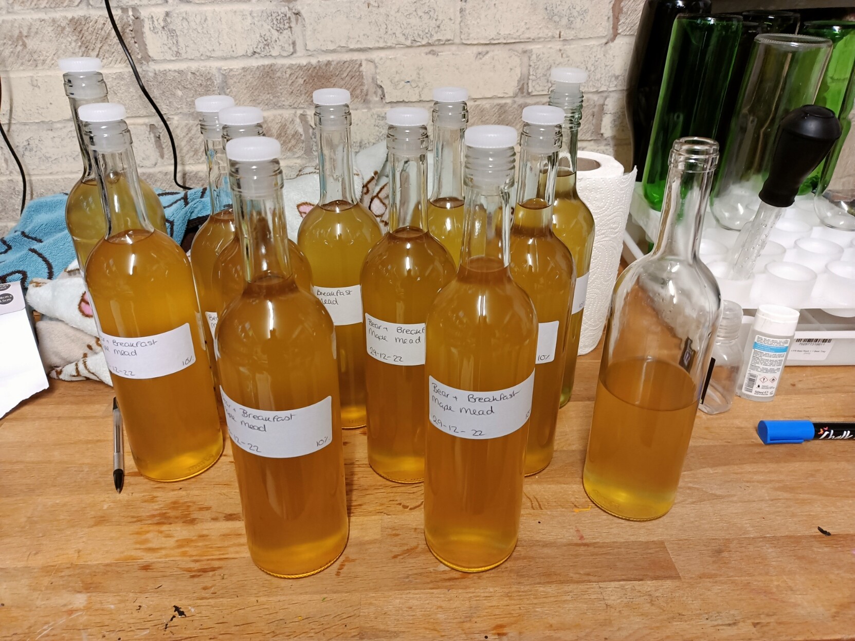 Introducing Bears 'n' Breakfast, just shy of 2 gallon back sweetend mead using maple syrup for that hint of flavour.