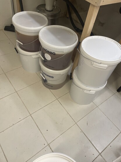 Mit grob 70kg hatte ich nochmal gerechnet. In den Eimern stehen aber jetzt 116kg #honig hier 😳