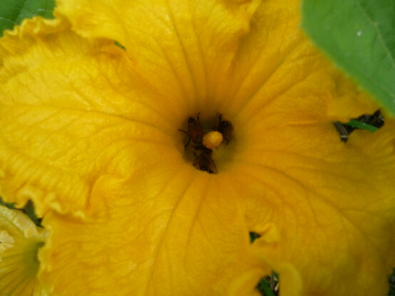 Meine Kürbisblüten sind voller #Honigbienen. Die besetzen die Blüten regelrecht. Vor dem Honigbienenboom, der dafür gesorgt hat, dass sich mind. 2 Bienenvölker in unserer Nachbarschaft (Stadt) befinden, waren viele Hummeln hier. Sie sind zwar auch noch da, aber enorm viel weniger. Eines dieser Honigbienenvölker steht direkt beim Nachbarn. Ich beobachte das mit Sorge. #garten