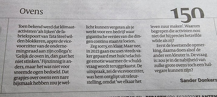 Prachtige column van Sander Donkers in #Volkskrant De vraag is : zou je in nabijheid van zulke grote #hoogovens toch ee halvegate kunnen zijn?