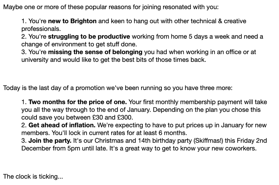 You considered Coworking from The Skiff in #brighton but haven't yet joined...
