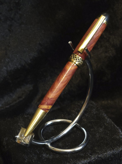 That pool cue pen is devilishly hard to manage. At 8.5 inches, no pen box or display fits. Normal pen pots tend to tip over. Something had to be done so I figured why not manage it like any other pool cue and make a cue stand for it?