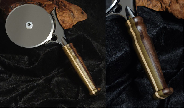 Did someone say pizza cutter? #hotoffthelathe today is a monster sized pizza cutter from Wood River. I used one of the #scrapwoodchallenge blanks from the previous post to turn a handle. I love the green poplar contrasting with almost black wenge and the white ash. Going to try it out tonight!