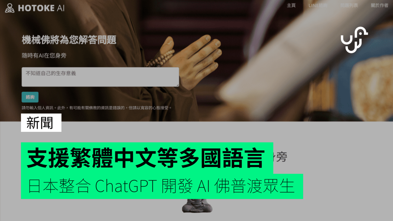 The post 支援繁體中文等多國語言 日本整合 ChatGPT 開發 AI 佛普渡眾生 appeared first on 香港 unwire.hk 玩生活.樂科技.
