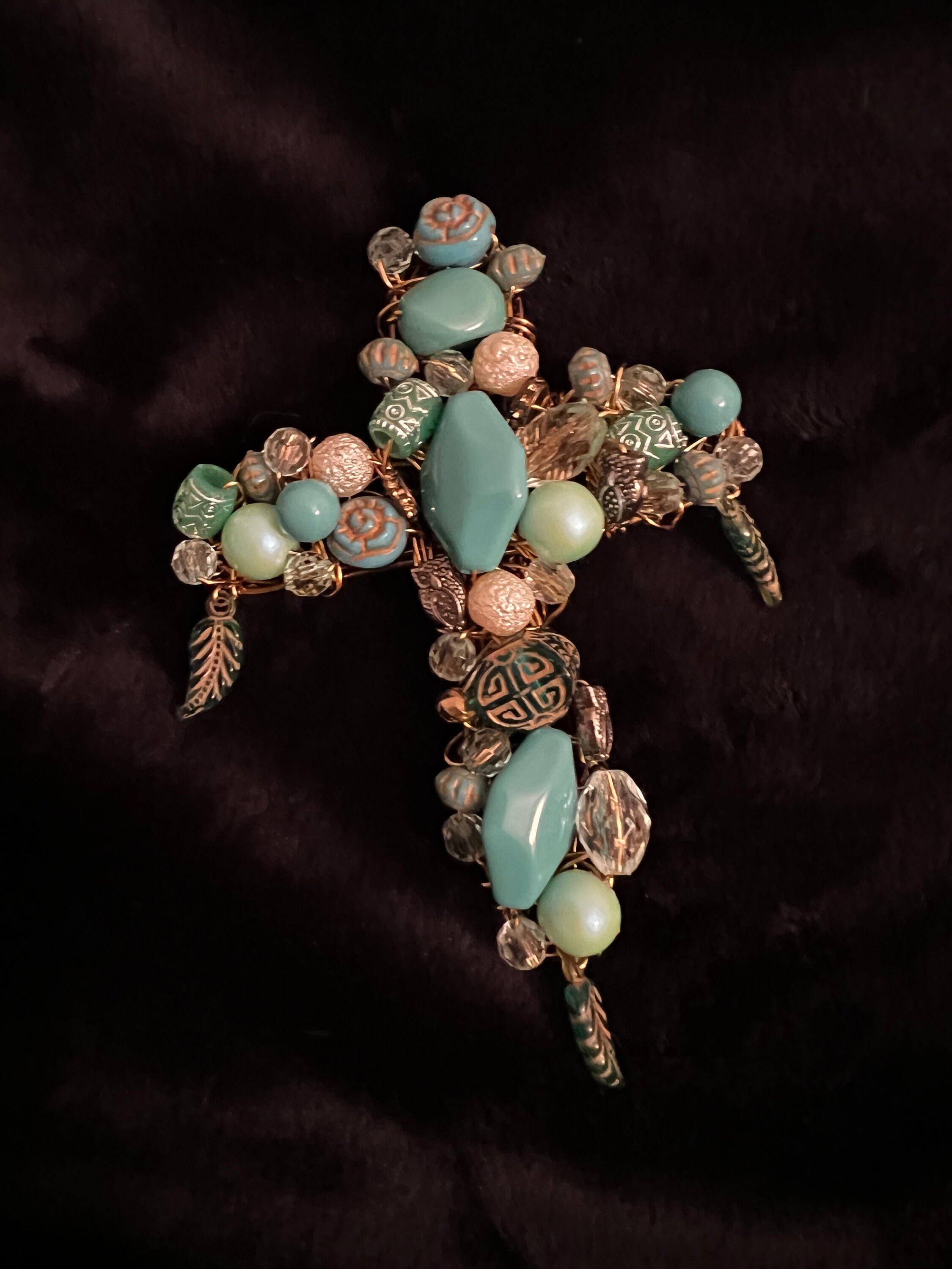 Available Now on my #etsy shop: Wisdom in Flight Cross #green #housewarming #beading #blue #bedroom #artdeco #cross #turquoise #feathers https://etsy.me/3Tpssf8 https://i.etsystatic.com/41720584/r/il/39e4db/4703745578/il_fullxfull.4703745578_mt37.jpg PM for more details!