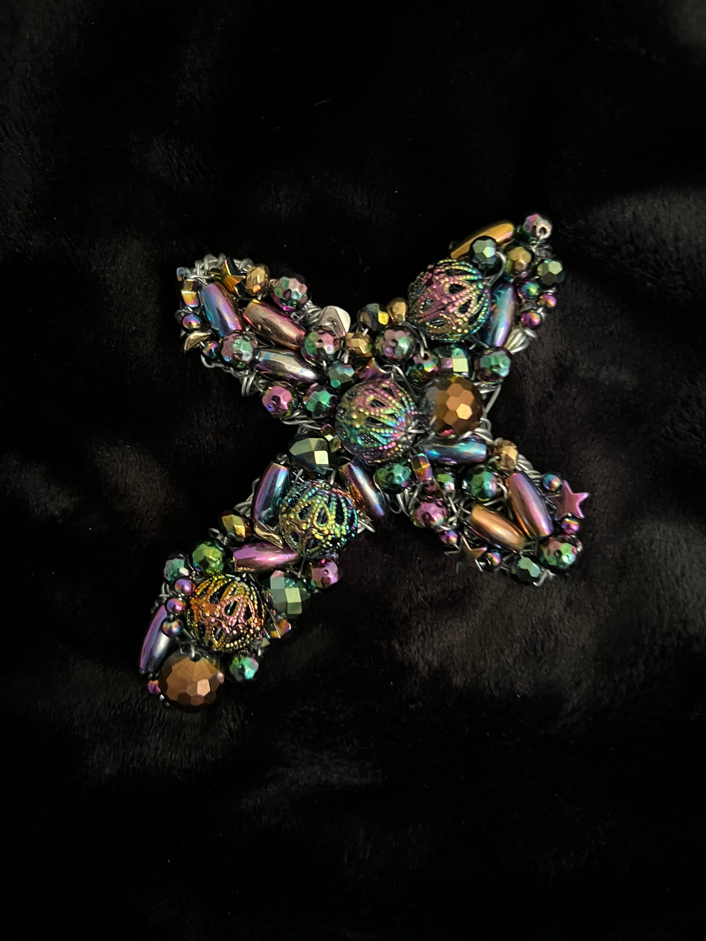 Long week...time to spend some of that hard earned money on yourself, or a friend, or family member, check out the Metatron Cross in my #etsy shop #rainbow #housewarming #beading #entryway #artdeco #cross #metallicbeads #metallicrainbow #beads https://etsy.me/3nzW4dO https://i.etsystatic.com/41720584/r/il/838e84/4792437931/il_fullxfull.4792437931_kl8m.jpg