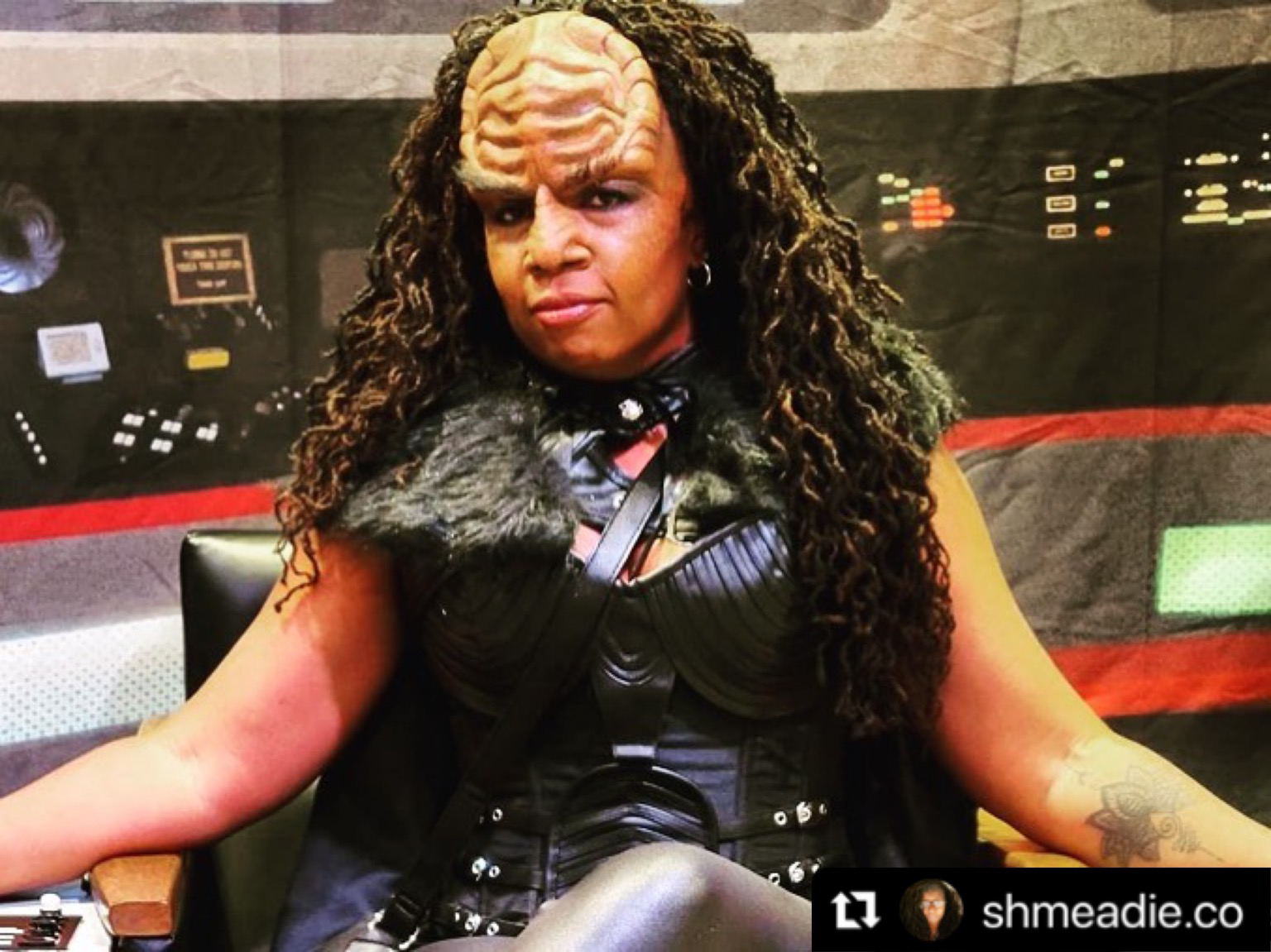 I am Shal’nok, daughter of Lo’el, house of Prontigh, daughter of Baelor, house of Ku’dau, bane to all forms of bigotry, slayer of ass. #startrekthecruise2023 #KlingonWarrior #ShalNok #HumanistTrek #StarTrek