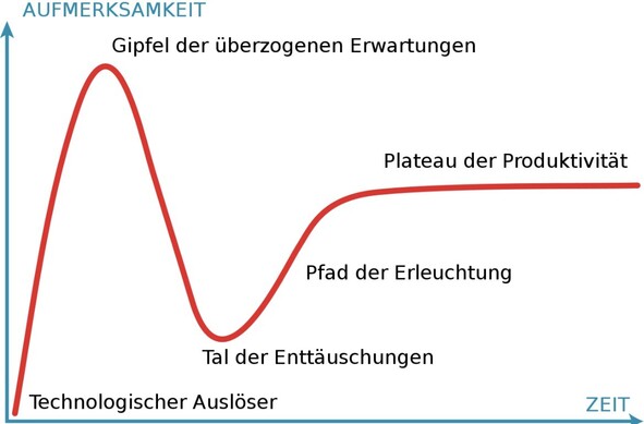 in der Technologiebranche häufig angewandte grafische Darstellung der (medialen) Aufmerksamkeit spezifischer neuer Technologien