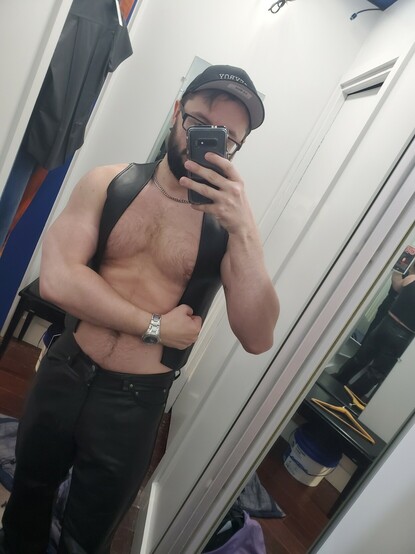Did I talk you I'm into leather too, bros? #hypnojock #pecs #hypnokink #gym #leather #leatherman