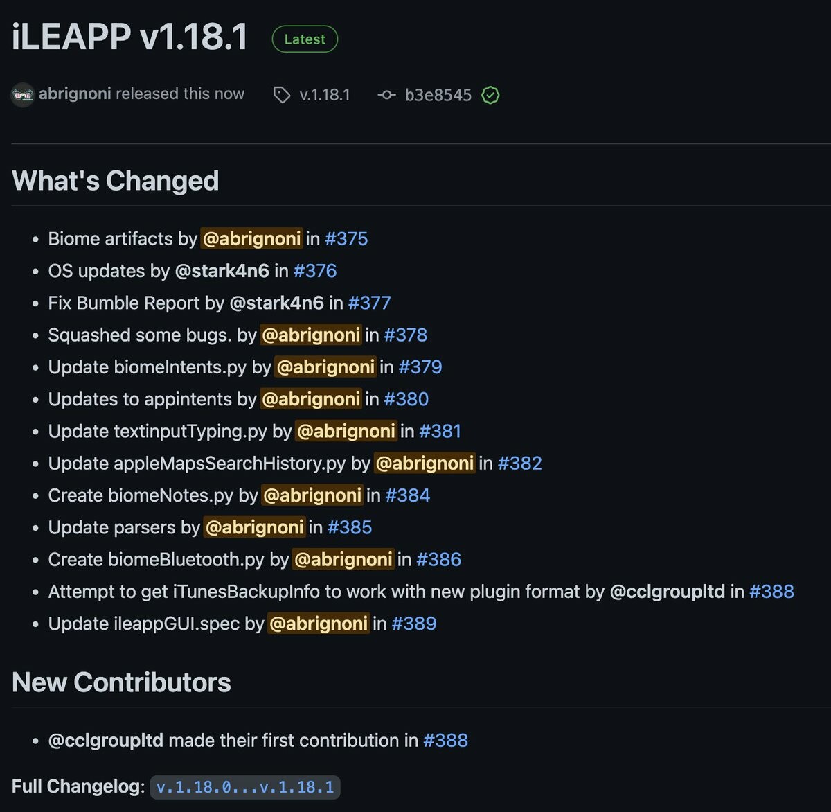 New #ILEAPP v1.18.1 release for #iOS extractions.
