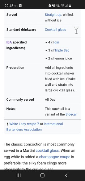 [Picture of cocktail recipe; 4 cl gin, 3 cl Triple sec, 2 cl lemon juice. Shake with ice]