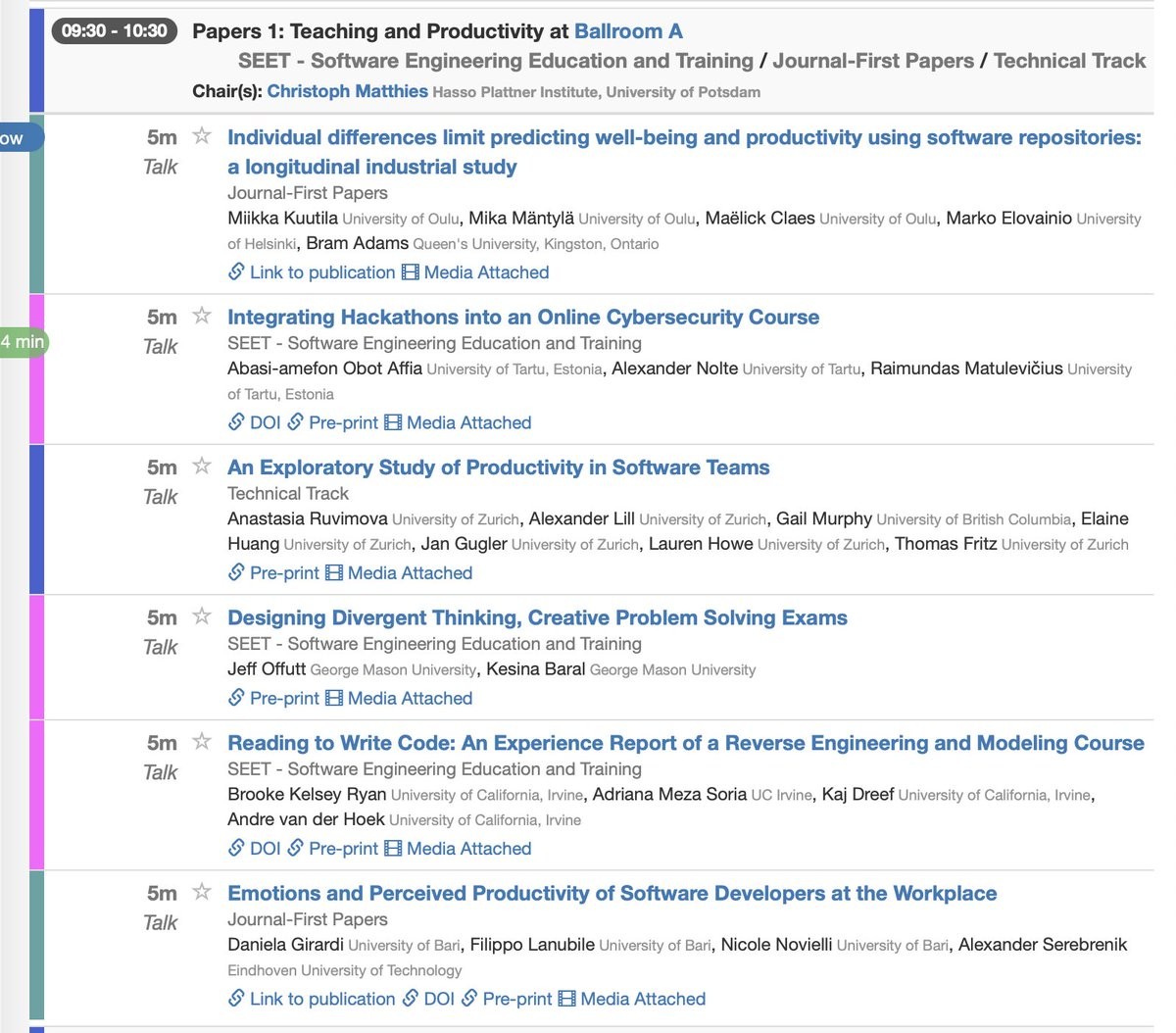 Come join the @ICSEconf@twitter.com session on "Teaching and Productivity", starting soon! #ICSE2022
