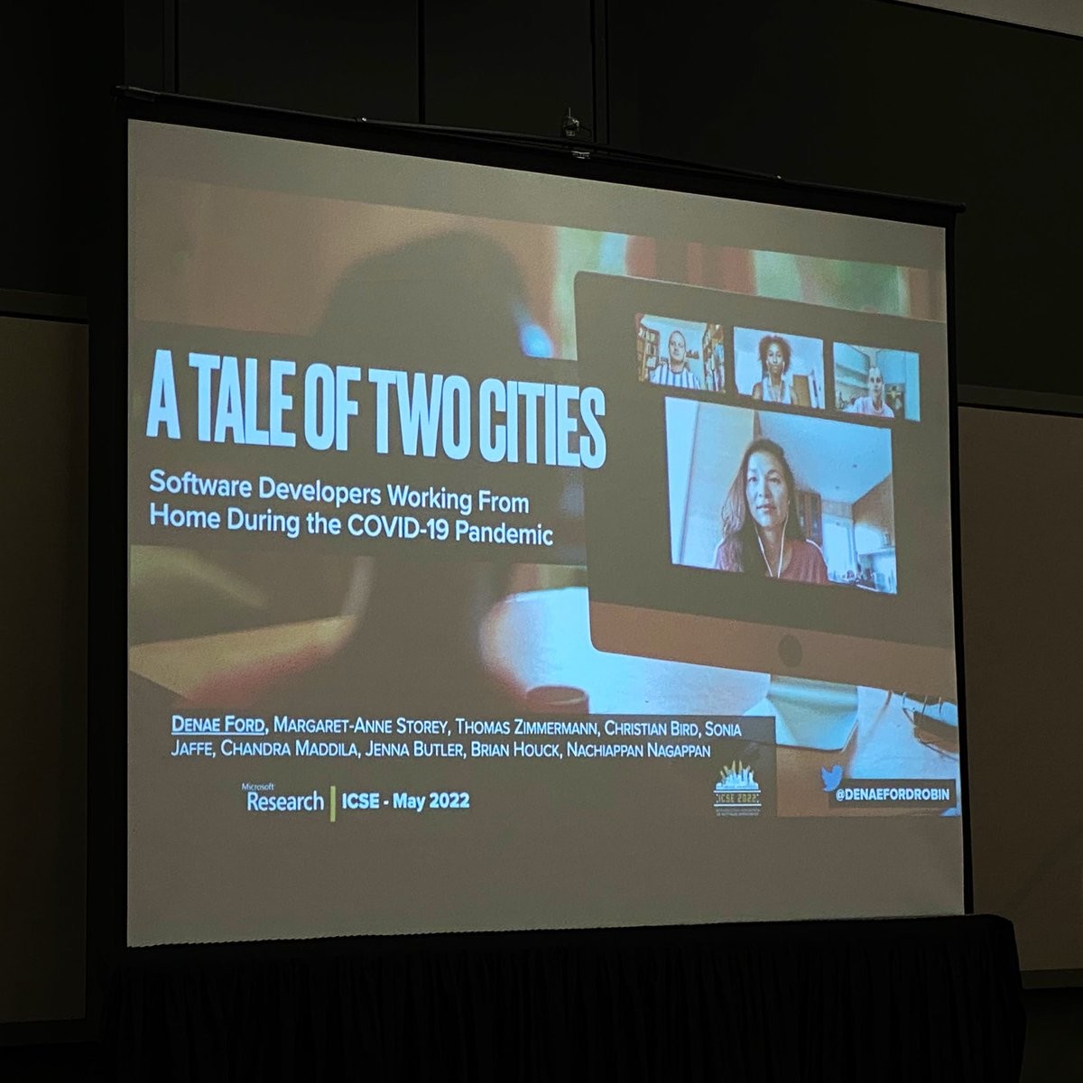 .@denaefordrobin@twitter.com on βA Tale of Two Cities: Software Developers Working from Home During the COVID-19 Pandemicβ with recommendations for remote onboarding and team productivity. π· @ICSEconf@twitter.com #icse2022